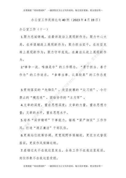 办公室工作类排比句40例(2023年4月19日)[更多资源请百度搜索“培实素材网”]
