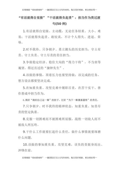 (50例)“有活就得自觉接”“干活就得负起责”:担当作为类过渡句[更多资源请百度搜索“培实素材网”]