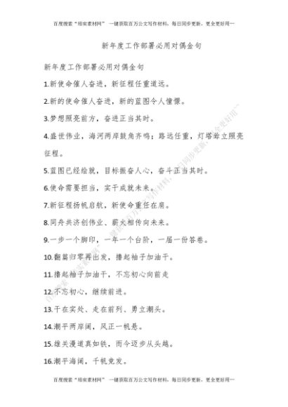 新年度工作部署必用对偶金句[更多资源请百度搜索“培实素材网”]