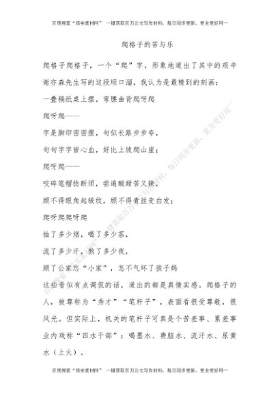 爬格子的苦与乐[更多资源请百度搜索“培实素材网”]