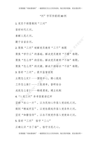 “问”字写作提纲30例[更多资源请百度搜索“培实素材网”]