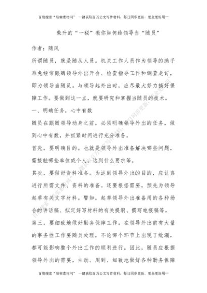 荣升的“一秘”教你如何给领导当“随员”[更多资源请百度搜索“培实素材网”]