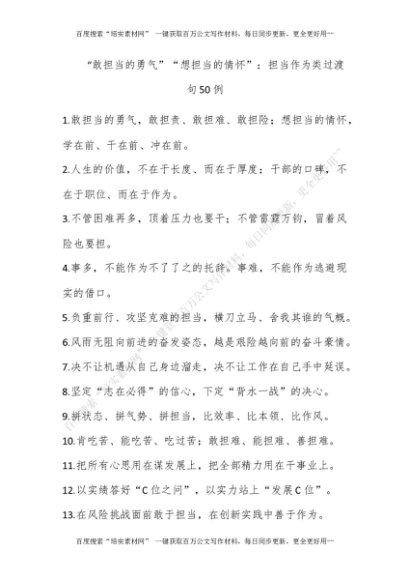 “敢担当的勇气”“想担当的情怀”:担当作为类过渡句50例[更多资源请百度搜索“培实素材网”]