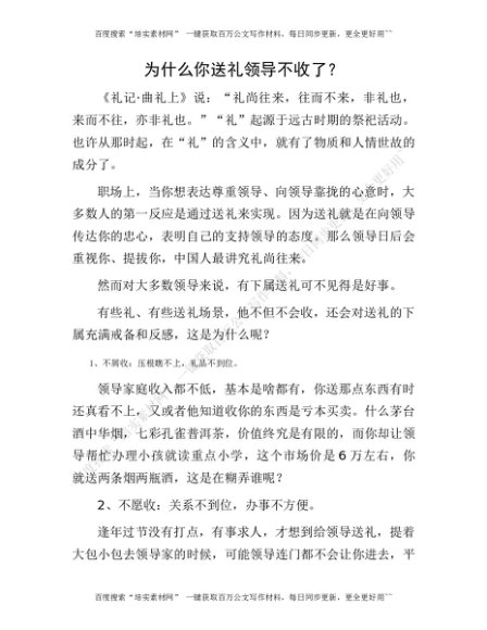 为什么你送礼领导不收了?[更多资源请百度搜索“培实素材网”]