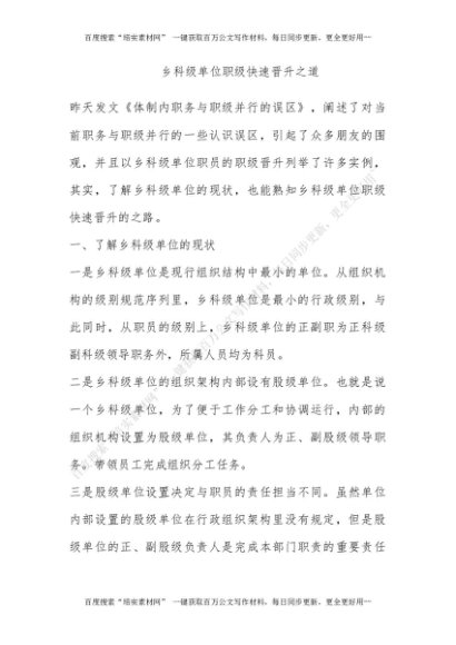 乡科级单位职级快速晋升之道[更多资源请百度搜索“培实素材网”]