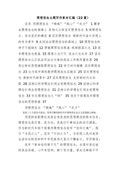 理想信念主题写作素材汇编(22篇)[更多资源请百度搜索“培实素材网”]