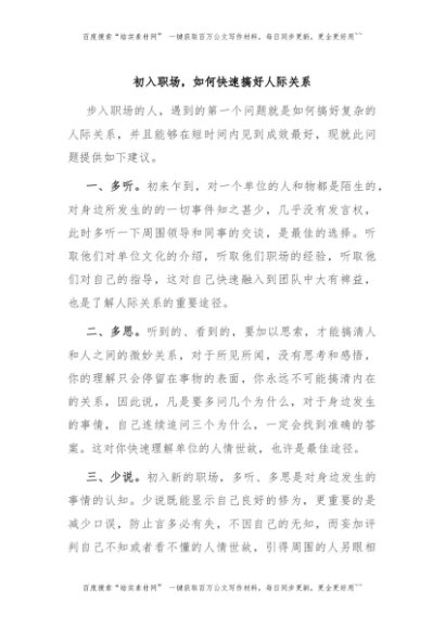 初入职场,如何快速搞好人际关系[更多资源请百度搜索“培实素材网”]