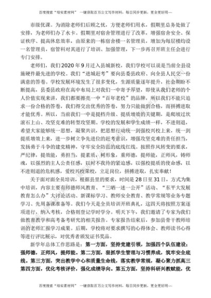 东平一中校长郭传锋:在全体教职工大会上的讲话[更多资源请百度搜索“培实素材网”]
