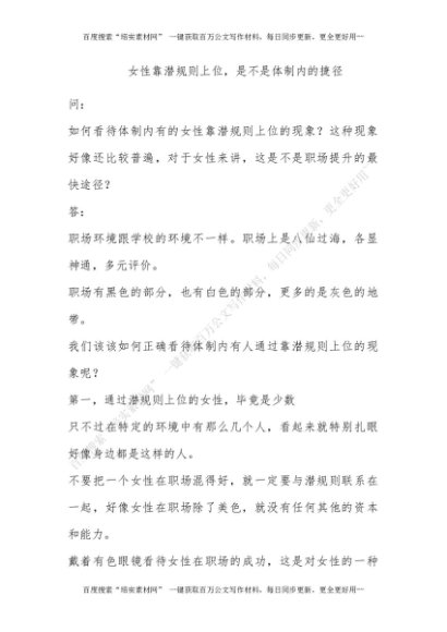 女性靠潜规则上位,是不是体制内的捷径[更多资源请百度搜索“培实素材网”]