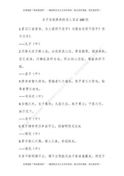 关于自我修养的名人名言100则[更多资源请百度搜索“培实素材网”]