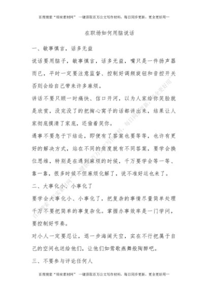 在职场如何用脑说话[更多资源请百度搜索“培实素材网”]
