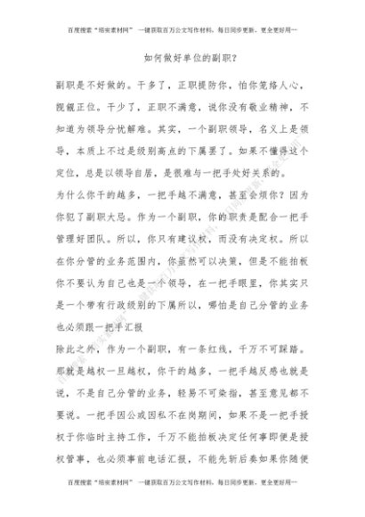 如何做好单位的副职?[更多资源请百度搜索“培实素材网”]