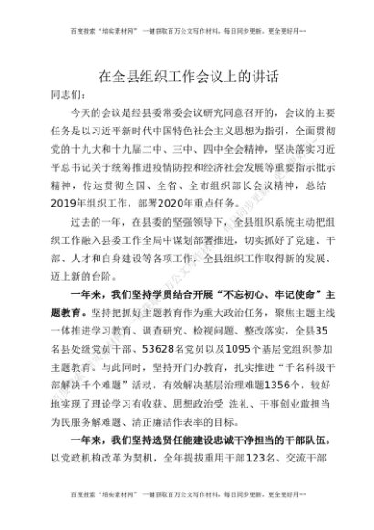 在全县组织工作会议上的讲话[更多资源请百度搜索“培实素材网”]