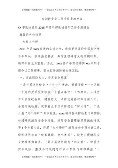 在消防安全工作会议上的发言[更多资源请百度搜索“培实素材网”]