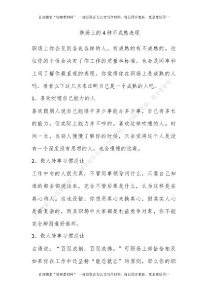 职场上的4种不成熟表现[更多资源请百度搜索“培实素材网”]