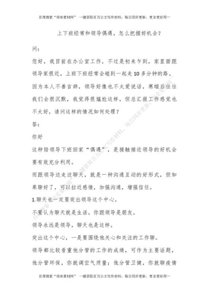 上下班经常和领导偶遇,怎么把握好机会?[更多资源请百度搜索“培实素材网”]
