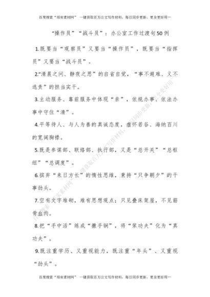 “操作员”“战斗员”:办公室工作过渡句50例[更多资源请百度搜索“培实素材网”]