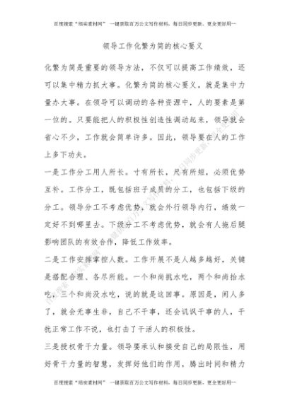 领导工作化繁为简的核心要义[更多资源请百度搜索“培实素材网”]