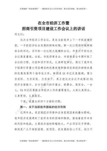 2020040505在全市经济工作暨招商引资项目建设工作会议上的讲话[更多资源请百度搜索“培实素材网”]