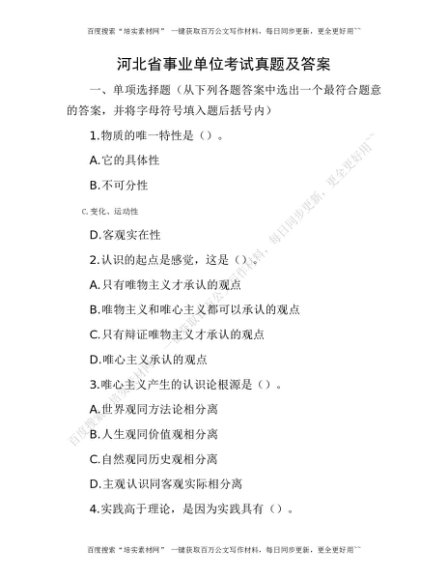 河北省事业单位考试真题及答案[更多资源请百度搜索“培实素材网”]