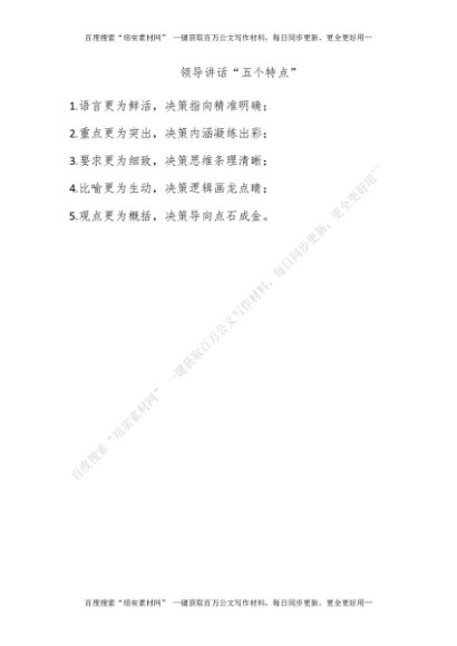 领导讲话“五个特点”[更多资源请百度搜索“培实素材网”]