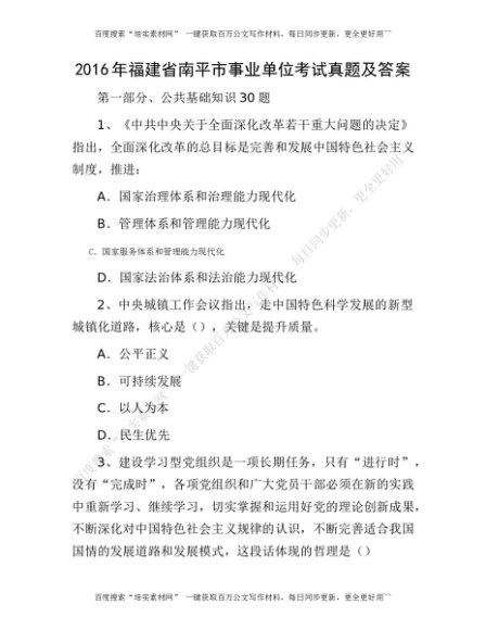 2016年福建省南平市事业单位考试真题及答案(1)[更多资源请百度搜索“培实素材网”]