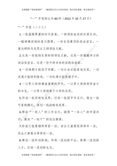 “一”字型排比句40例(2022年10月27日)[更多资源请百度搜索“培实素材网”]