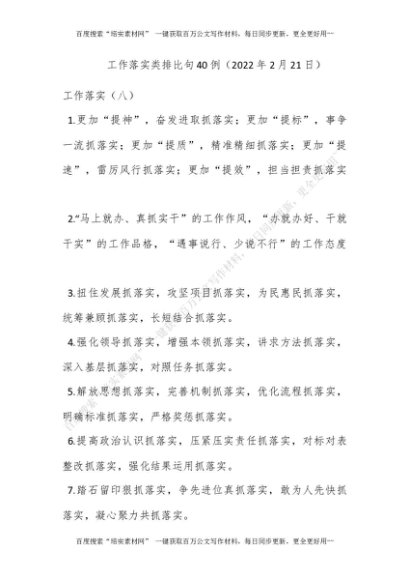 工作落实类排比句40例(2022年2月21日)[更多资源请百度搜索“培实素材网”]