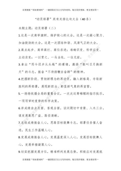“动员部署”类有关排比句大全(40条)[更多资源请百度搜索“培实素材网”]