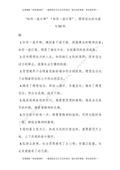 “如同一座丰碑”“如同一座灯塔”:理想信念类过渡句50例[更多资源请百度搜索“培实素材网”]