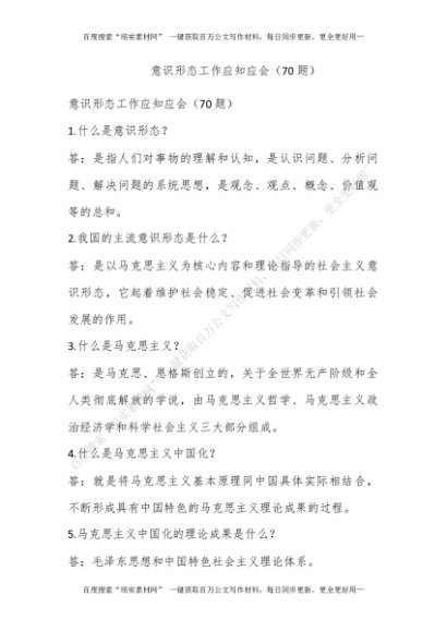意识形态工作应知应会(70题)[更多资源请百度搜索“培实素材网”]