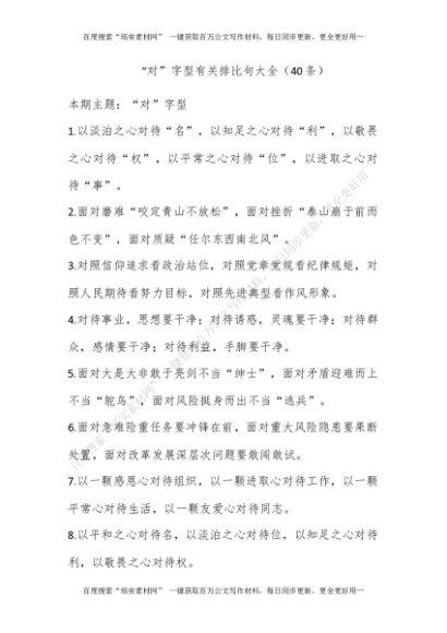 “对”字型有关排比句大全(40条)[更多资源请百度搜索“培实素材网”]