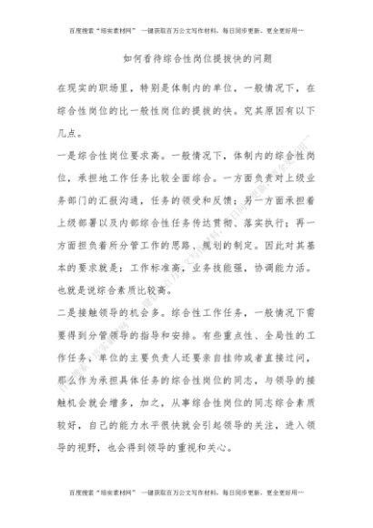 如何看待综合性岗位提拔快的问题[更多资源请百度搜索“培实素材网”]