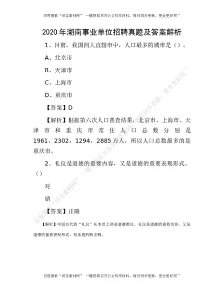 2020年湖南事业单位招聘真题及答案解析[更多资源请百度搜索“培实素材网”]