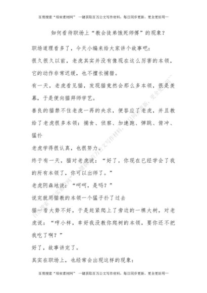 如何看待职场上“教会徒弟饿死师傅”的现象?[更多资源请百度搜索“培实素材网”]