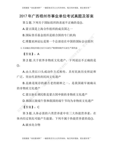2017年广西梧州市事业单位考试真题及答案(1)[更多资源请百度搜索“培实素材网”]