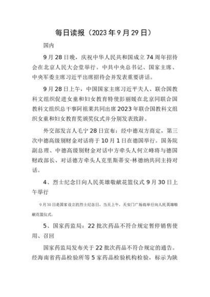 每日读报(2023年9月29日)[更多资源请百度搜索“培实素材网”]