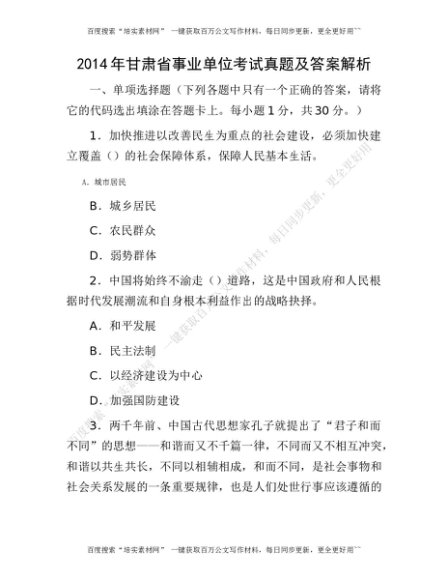 2014年甘肃省事业单位考试真题及答案解析[更多资源请百度搜索“培实素材网”]