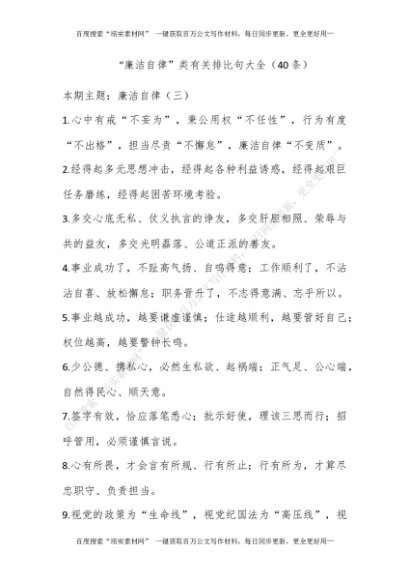 “廉洁自律”类有关排比句大全(40条)_1[更多资源请百度搜索“培实素材网”]