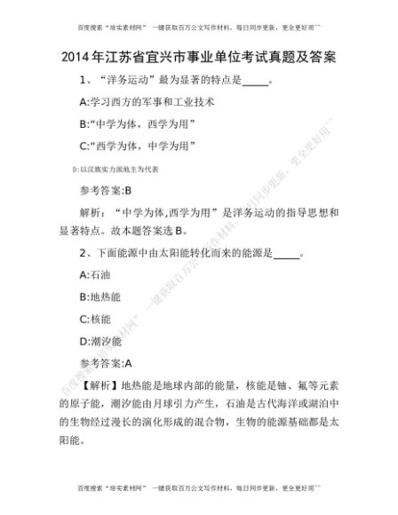 2014年江苏省宜兴市事业单位考试真题及答案[更多资源请百度搜索“培实素材网”]