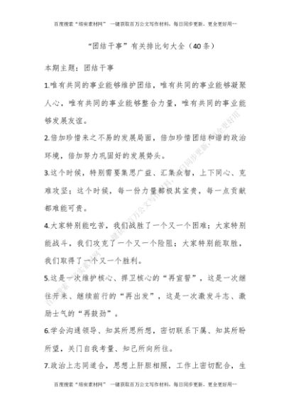 “团结干事”有关排比句大全(40条)[更多资源请百度搜索“培实素材网”]