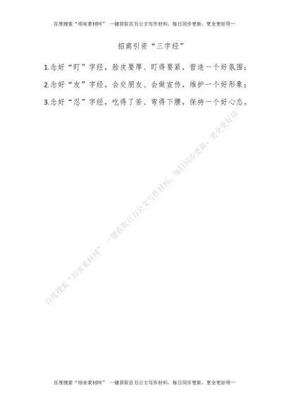 招商引资“三字经”[更多资源请百度搜索“培实素材网”]