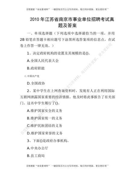 2010年江苏省南京市事业单位招聘考试真题及答案[更多资源请百度搜索“培实素材网”]