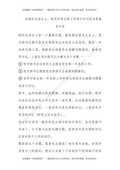 在组织生活会上,党员对党支部工作进行评议的3种基本方法[更多资源请百度搜索“培实素材网”]