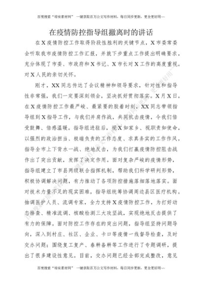 在疫情防控指导组撤离时的讲话[更多资源请百度搜索“培实素材网”]
