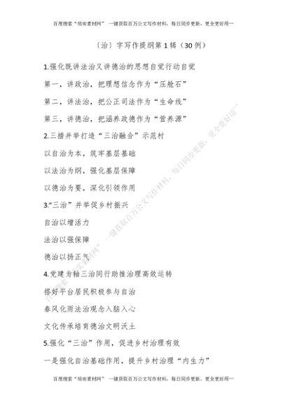 〔治〕字写作提纲第1辑(30例)[更多资源请百度搜索“培实素材网”]
