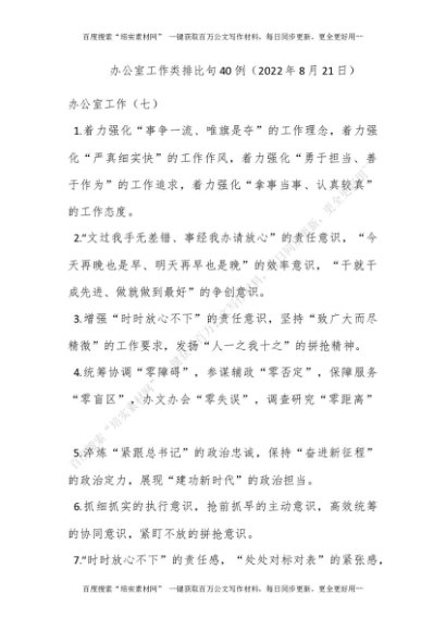 办公室工作类排比句40例(2022年8月21日)[更多资源请百度搜索“培实素材网”]