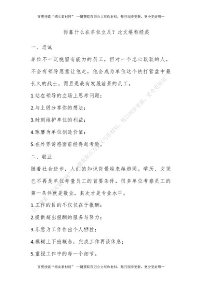 你靠什么在单位立足?此文堪称经典[更多资源请百度搜索“培实素材网”]