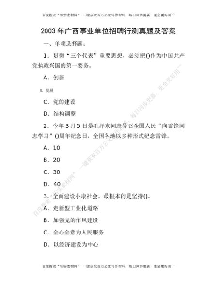 2003年广西事业单位招聘行测真题及答案[更多资源请百度搜索“培实素材网”]