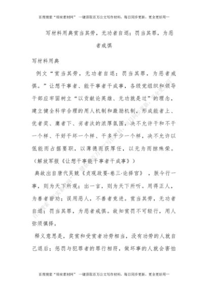 【写材料用典】赏当其劳,无功者自退;罚当其罪,为恶者戒惧[更多资源请百度搜索“培实素材网”]